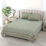 100% Pure Cotton Traditional Printed Bedsheet for Double Bed King Size Bedsheet with 2 Pillow Covers