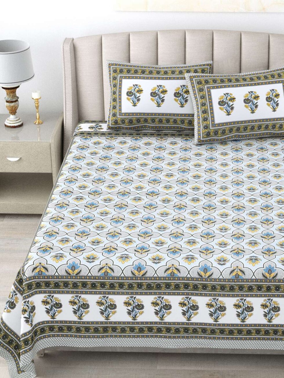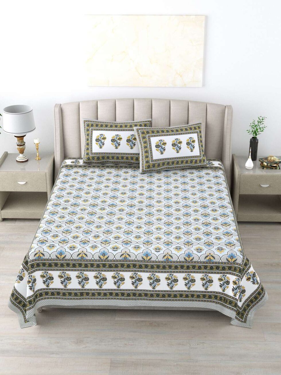100% Pure Cotton Traditional Printed Bedsheet for Double Bed King Size Bedsheet with 2 Pillow Covers